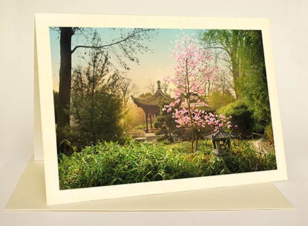 Der Chinesische Garten als feierliche Klappkarte im creme- oder rosafarbenen Kuvert.