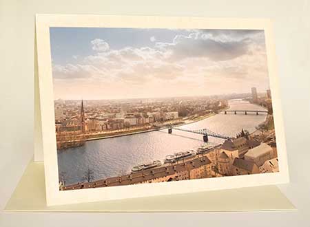 Blick über den Main als feierliche Klappkarte im cremefarbenen Kuvert.