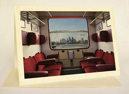 Das beliebte Zugabteil als feierliche Klappkarte mit cremefarbenen Kuvert.